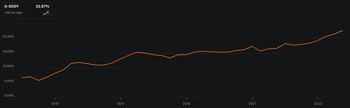GoDaddy 10-Year EBITDA Margin (Author, Using Seeking Alpha)