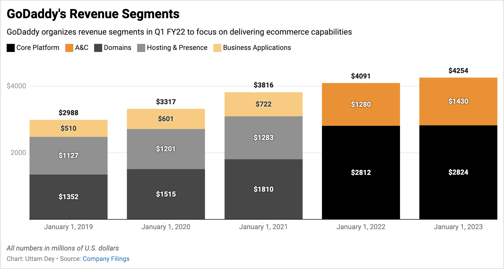 Exhibit B: GoDaddy’s Revenue Segments Are Reorganized in 2022 to focus on ecommerce applications (Company sources)