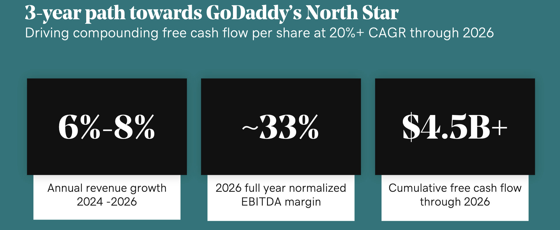 Exhibit G: GoDaddy’s 3 year financial targets on 3 metrics (2024 Investor Day Presentation, GoDaddy)
