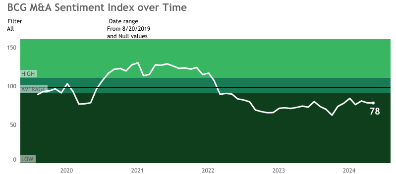 Nevertheless, as seen in the graph above, the revenue component of the whole segment has been progressively recovering from its lows due to a slight recovery in deal activity and higher trading volumes. This is consistent with the Boston Consulting Group M&A Index, that since November of 2023, sentiment in deal activity has been slowly rising. At the same time, the current index mark of 78, is still far away from the historical average of 100. This will provide more room for firms such as Goldman Sachs to recover their revenue entrance from M&A in the future. Finally, tailwinds such as the cuts in interest rates would most likely be a new market condition that would accelerate acquisition activity.