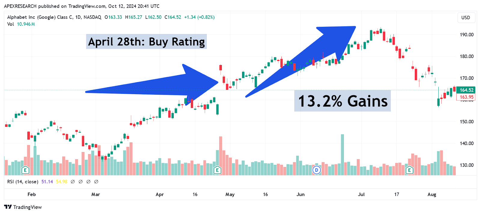 GOOG: Gains Follow Initial Buy Recommendation (Income Generator via Trading View)