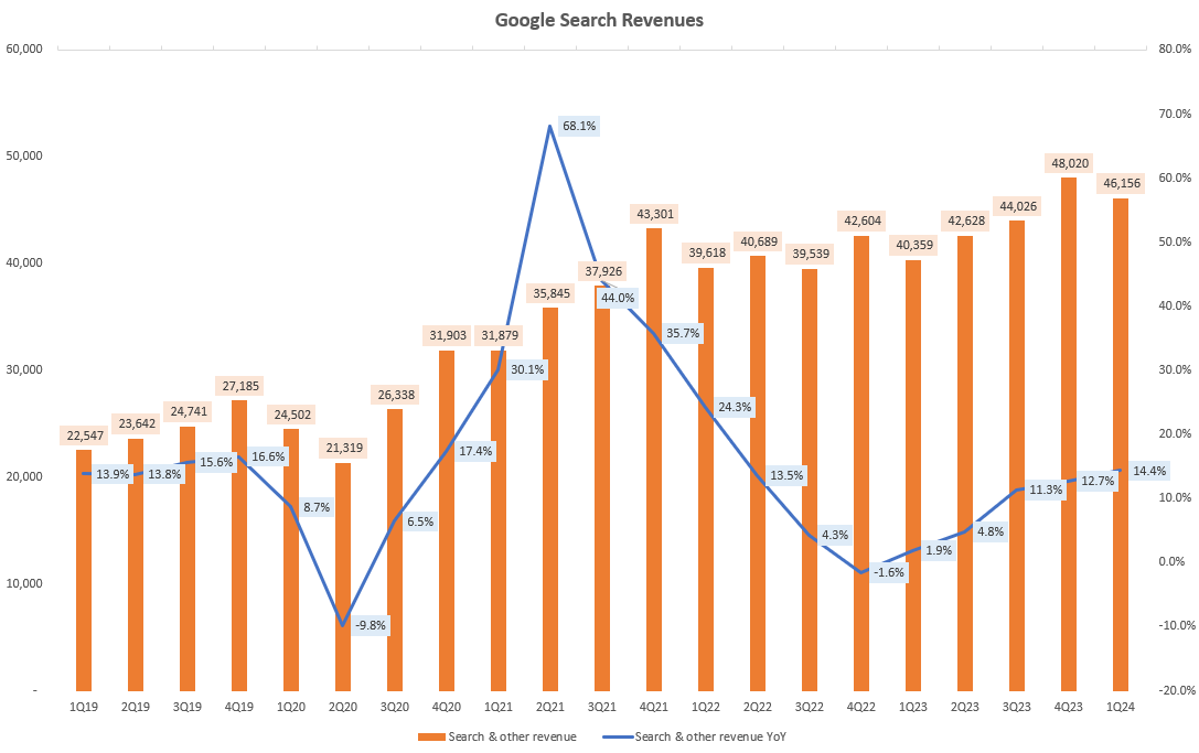 • Search advertising revenues make up the bulk of Alphabet’s top line. As I had anticipated last year, growth has been strong. This is driven by strength in APAC Retail.