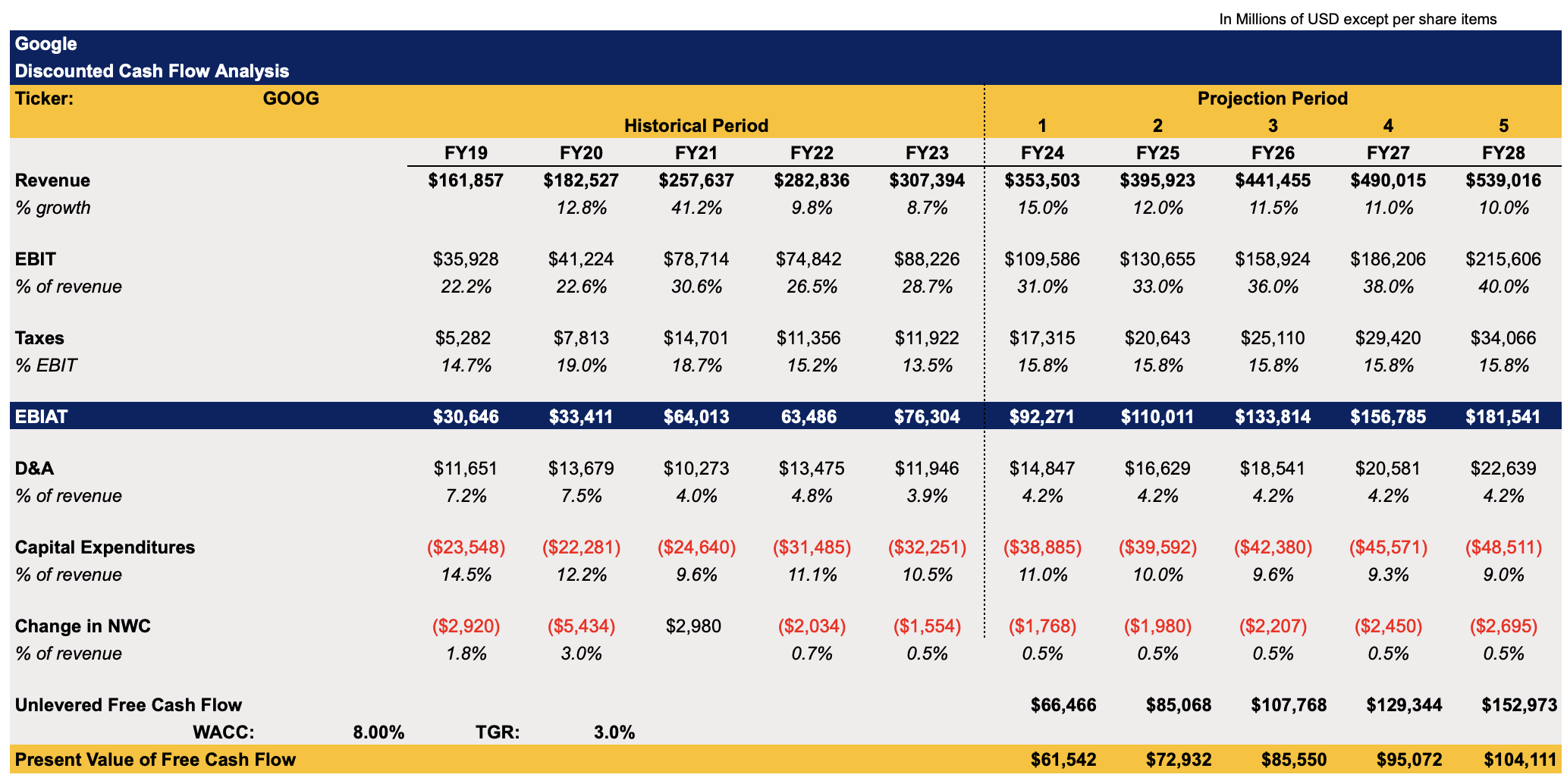 Google’s DCF Model (Historical Data: Seeking Alpha, Assumptions: Author )