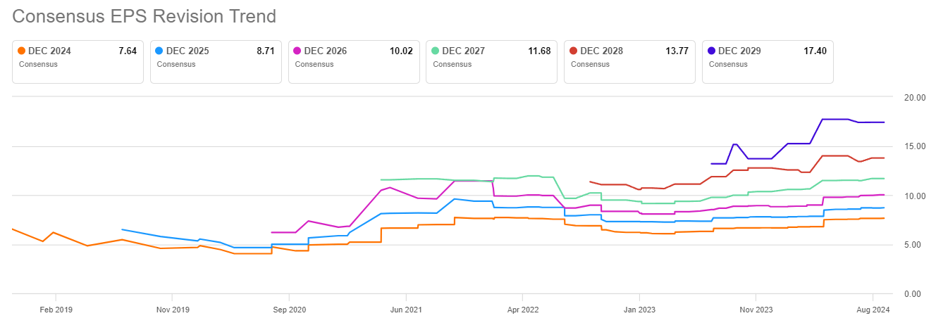 Strong second-quarter earnings, especially with regard to Cloud and Search results, translated to a strong buy rating: Valuation Makes No Sense. Google generated a ton of free cash flow — something that should be expected for Q3 as well — and the EPS estimate revision trend indicates the company is set for a strong second half of FY 2024. The antitrust issues are nothing but a distraction, in my opinion, and negative news should soon be replaced by a more constructive focus on Google’s AI-driven Q3 earnings. After Google’s Gemini event, I believe the tech company remains a top AI growth for investors… and one that trades at one of the best valuations available in the sector.