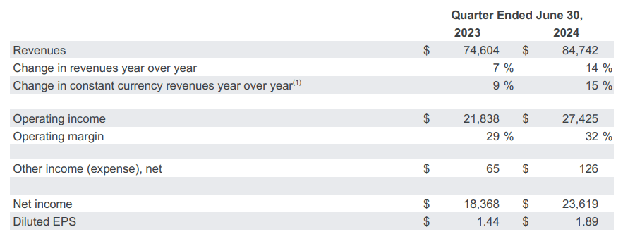 The company saw almost $85 billion in revenue for the recent quarter, up 15% YoY, showing the continued strength of its business.