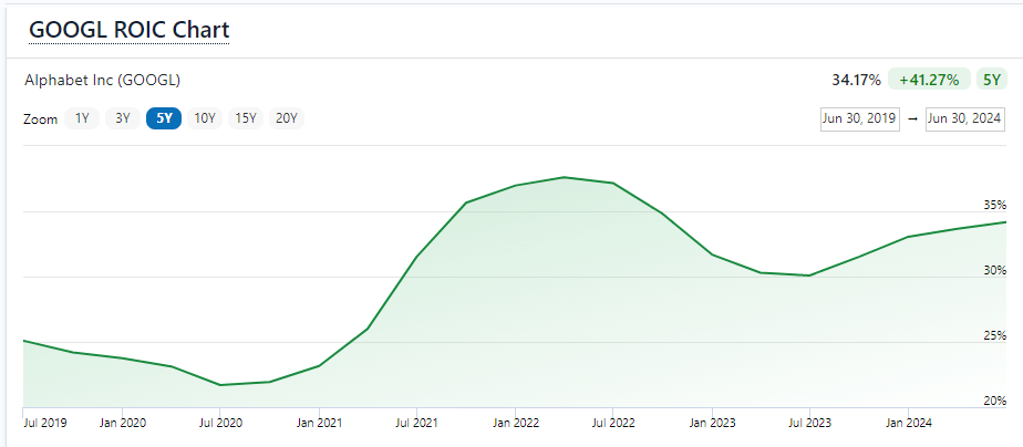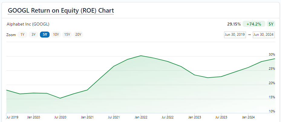 Therefore, Alphabet’s 5-year average of 22.28% is on par with its competition.