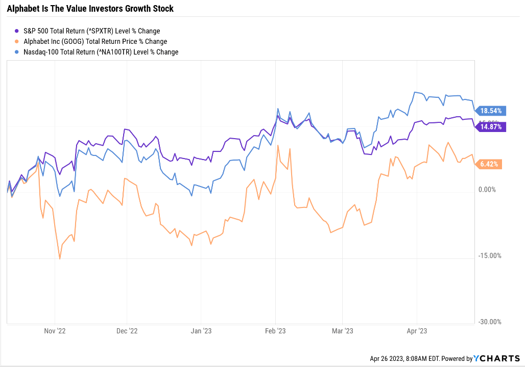 But it’s always a market of stocks, not a stock market, and Alphabet Inc. (NASDAQ:GOOG, NASDAQ:GOOGL) aka Google has significantly lagged the S&P 500 (SP500) and Nasdaq (COMP.IND).