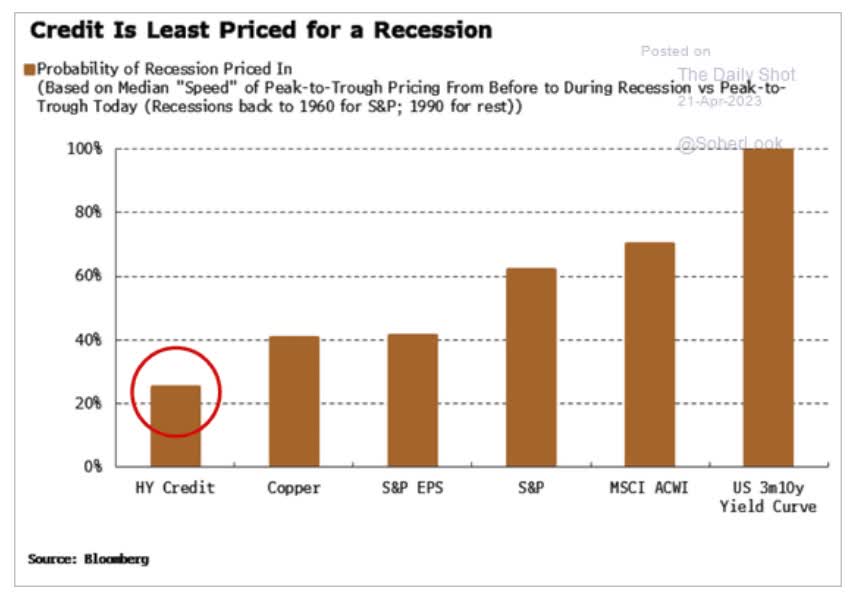 The bond market is pricing in a 100% risk of recession by October 2024, and the bond market is “the smart money” on Wall Street.