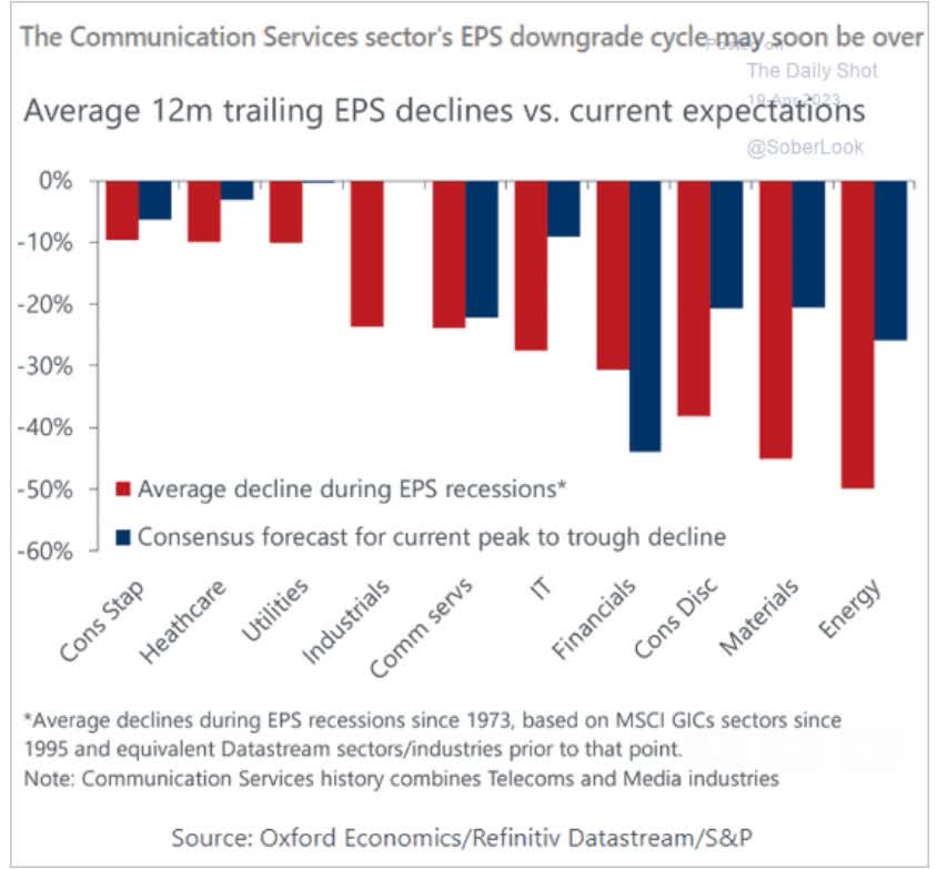 Communications companies average a 20% earnings decline during recessions, which is pretty much what the analyst consensus has priced in.