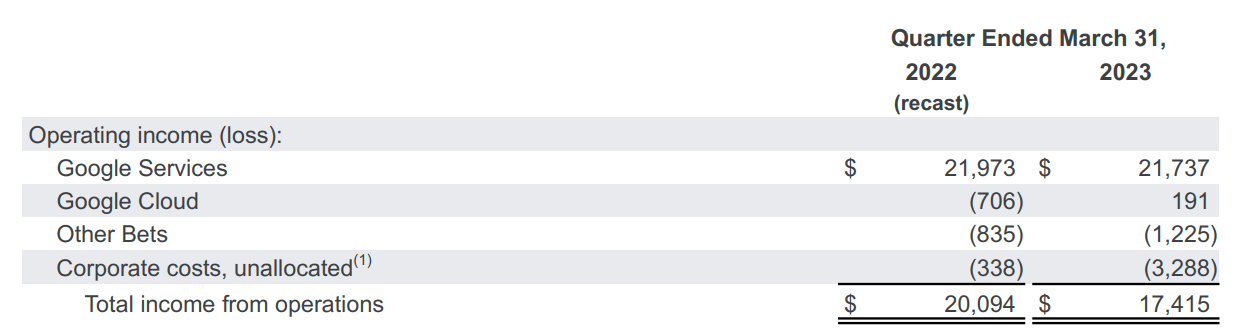 That $2 billion severance accounted for 75% of the decline in operating income in Q1.