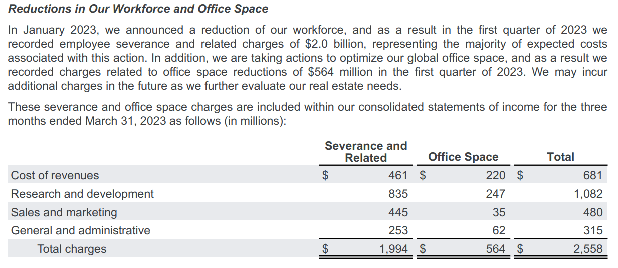 While Google’s headcount rose by 27,000 over the last year, they took a $2 billion charge for severance as they laid off 10,000 workers in January.