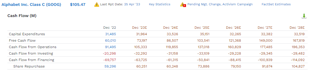 In 2022, Google generated $60 billion in free cash flow. This year, they are expected to generate $74 billion, or 23% more.