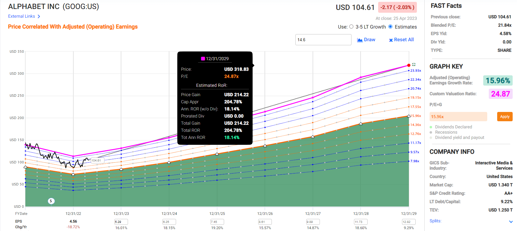 Google is historically valued by billions of tech investors at 25X earnings, and today it trades at a 25% historical discount of 18.7.
