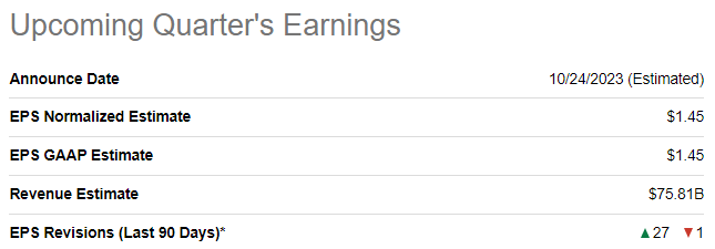 Heading into its Q3 2023 report, Alphabet (NASDAQ:GOOG)(NASDAQ:GOOGL) was projected to deliver revenues and normalized EPS of $75.8B and $1.45, respectively.