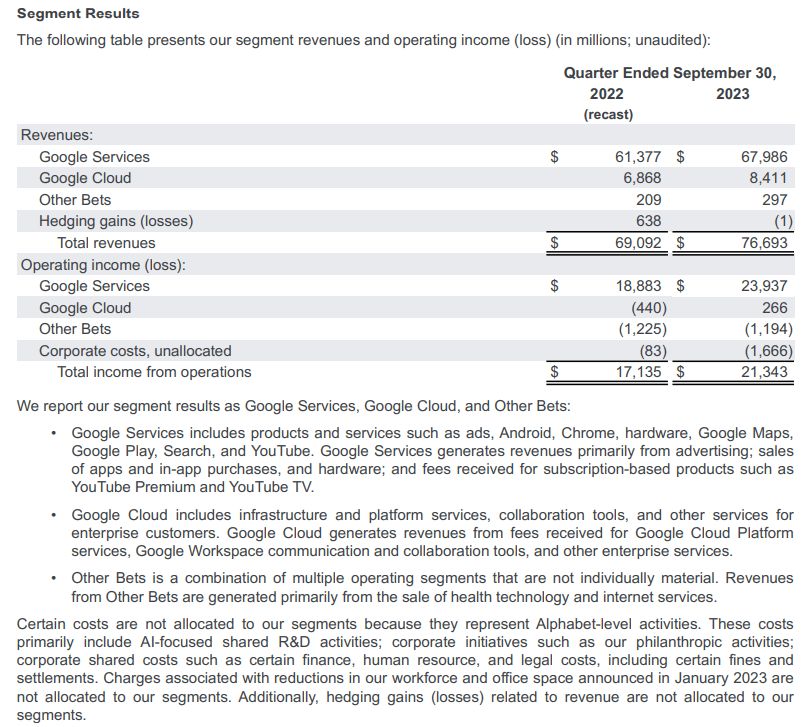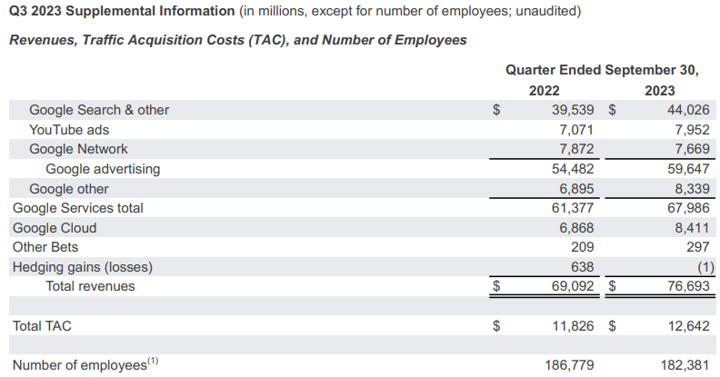 In Q3, YouTube revenues rose 12.45% y/y, marking further (somewhat expected) re-acceleration at a time when the writer and actor strikes in Hollywood are pushing consumers toward other entertainment platforms.