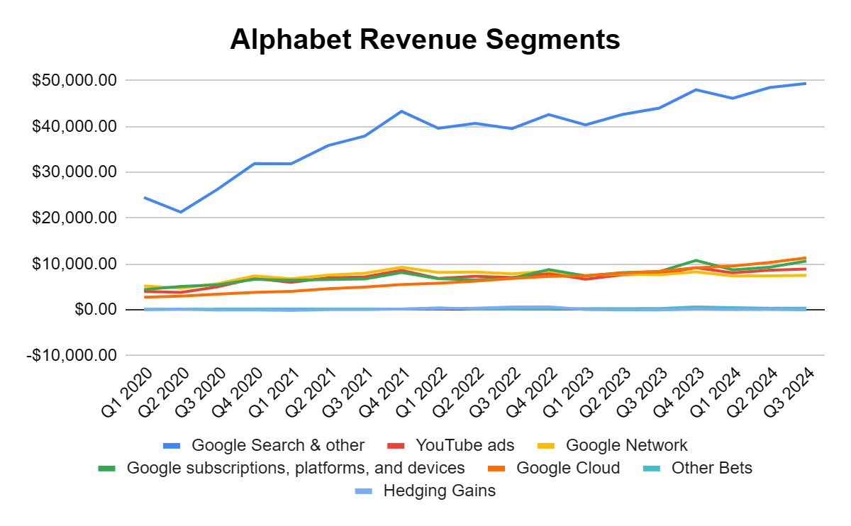 I think there are many reasons to be bullish on GOOGL going forward. GOOGL is trading at less than 18 times 2026 earnings, and its quarterly revenue is still growing by 4.16% QoQ and 15.09% YoY. In Q3, GOOGL generated over $6.78 billion of revenue and $2.02 billion of net income per week. The moat isn’t shrinking, and GOOGL’s revenue segments continue to grow. When I look out to 2025 and beyond, I think that GOOGL is in a fantastic position as the Trump Administration is likely to remove Lina Khan, which should create a stronger operating environment for Big Tech. I will be looking to increase my position in GOOGL as shares look to be the most undervalued in the Magnificent Seven.