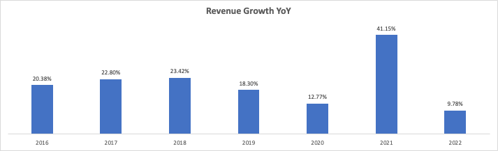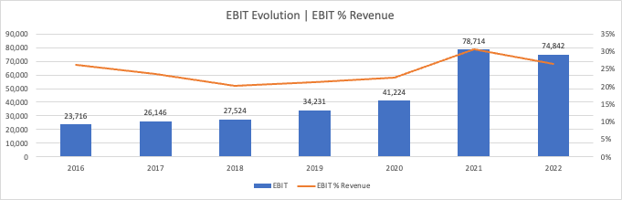 In ‘22, revenues increased by +9.8%, and +9.1% excluding non-recurring items. The growth was driven by its core business, Google Search, generating +$13.5 billion more than the previous year.