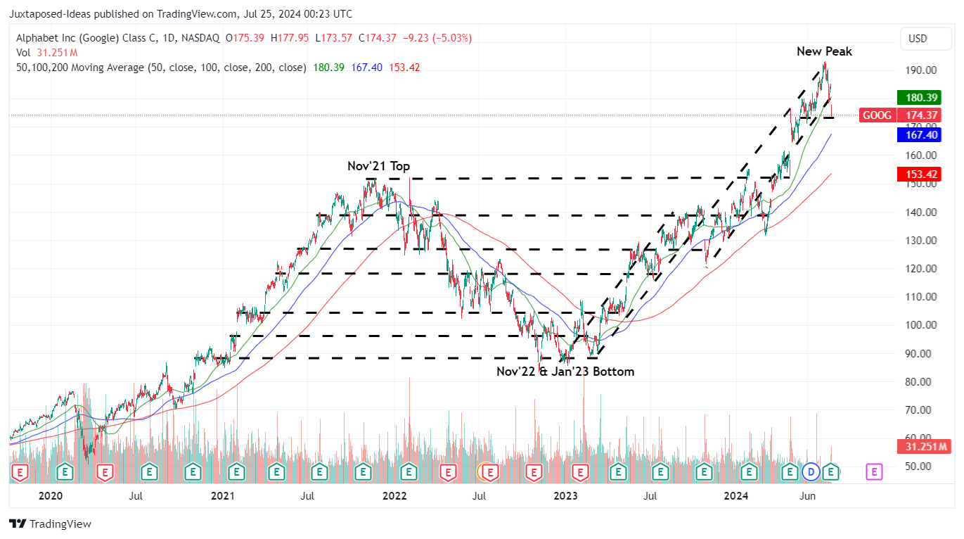 • GOOG is also nearing its projected $100B revenue run-rate from both YouTube Ads and Google Cloud by end 2024, as observed from the cumulative FQ2’24 revenue of $19B.