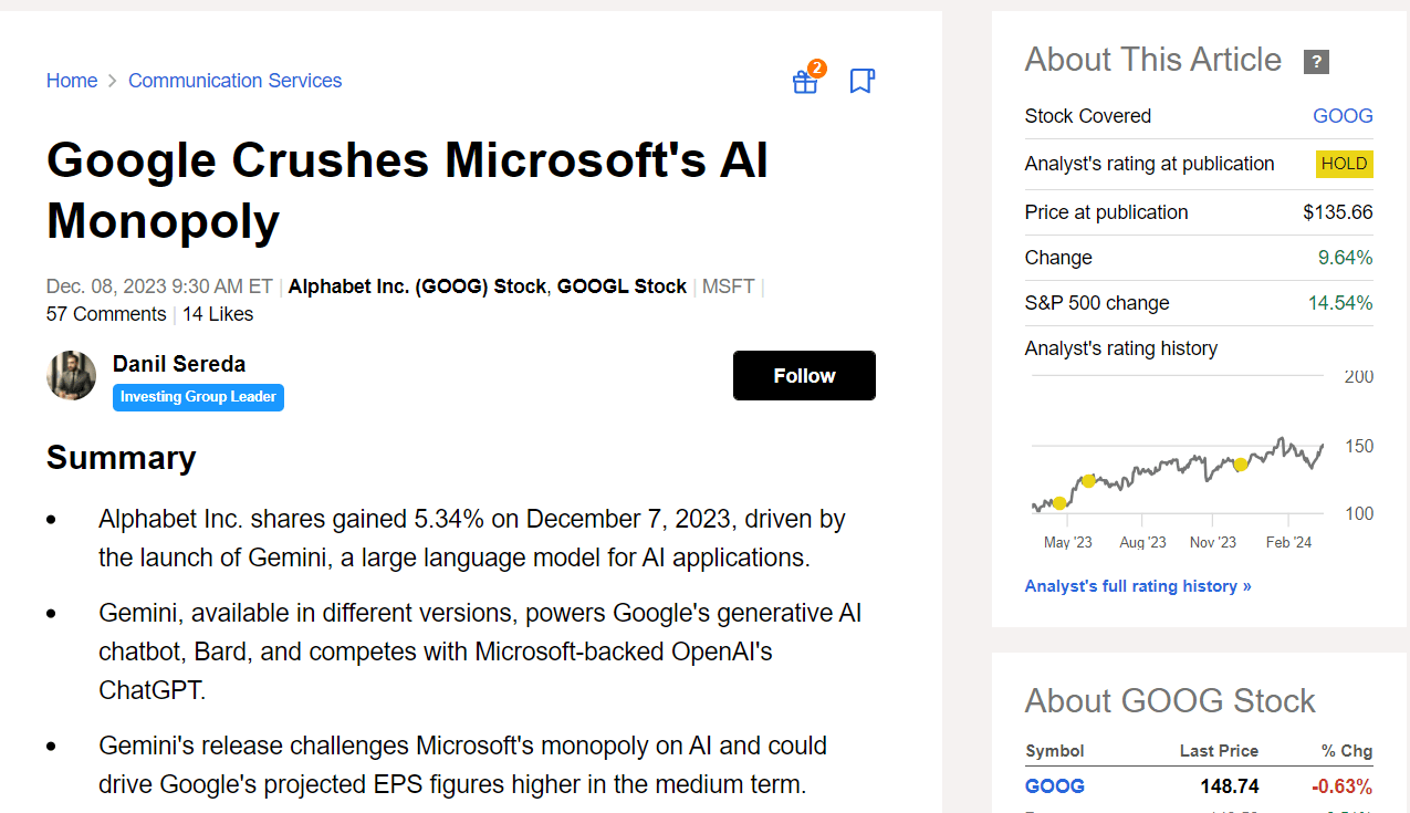 Seeking Alpha, the author’s previous article on Google stock