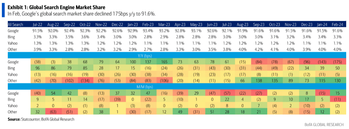 This negative sentiment towards Gemini could hurt future growth in this area. Furthermore, Google’s market share in search, although still over 90% of the total market, is slowly stagnating and this is likely to continue, in my view.