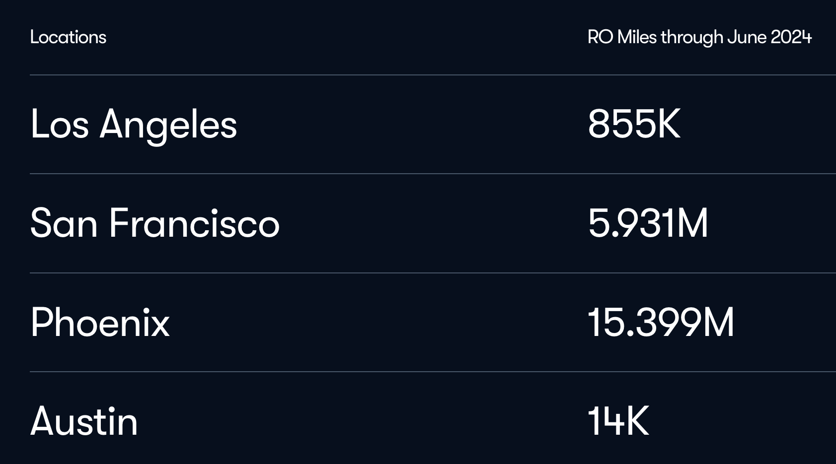 If other states such as Arizona also work out to about 6 miles for each trip like California, then Waymo is doing over 600 thousand miles per week nationally, seeing as they said they are now doing over 100 thousand rides per week. I think they’re doing about 2.5 million miles per month now, which is about 30 million miles per year, and this should go up substantially as they use the Uber app in new markets like Austin and Atlanta. Forbes says Buffalo, Dallas, Detroit, Houston, Las Vegas, Miami, New York City and Seattle are some 25 cities where Waymo is doing testing. Not only does Waymo have a lead, but they are building on it rapidly. In all of Waymo’s existence over many years, they only had about 22 million cumulative miles through June 2024, and now they are adding substantially more than that every single year.