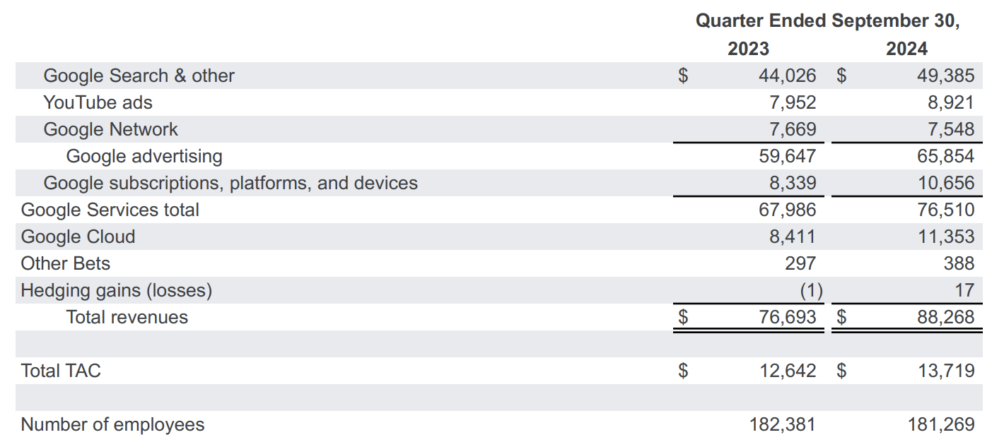 On a segment by segment basis, Google has continued to perform incredibly well.