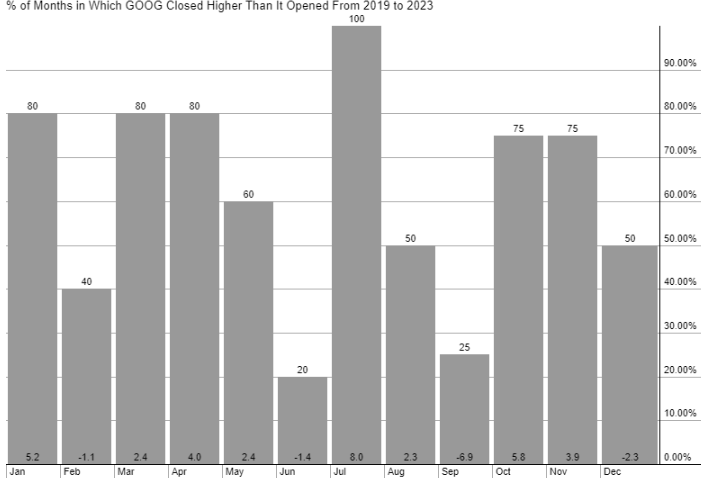 If we look at Alphabet’s seasonality, we can see that for the past few years, July has been positive 100% of the time.