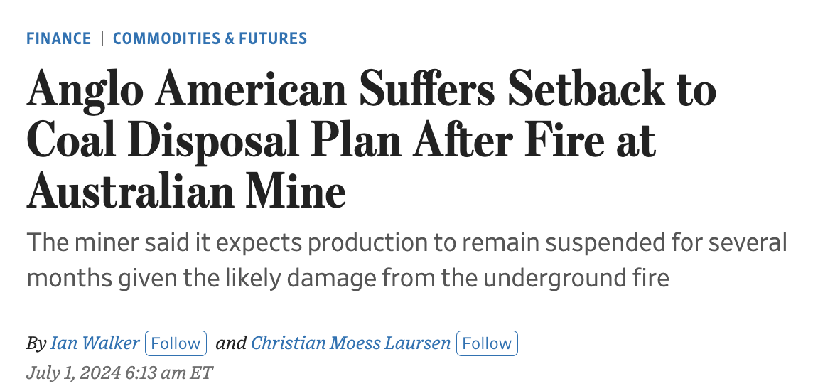The recent Anglo-American mine fire highlights the potential for coal supply constraints, benefiting AMR’s market position in a market with increasing supply risks.