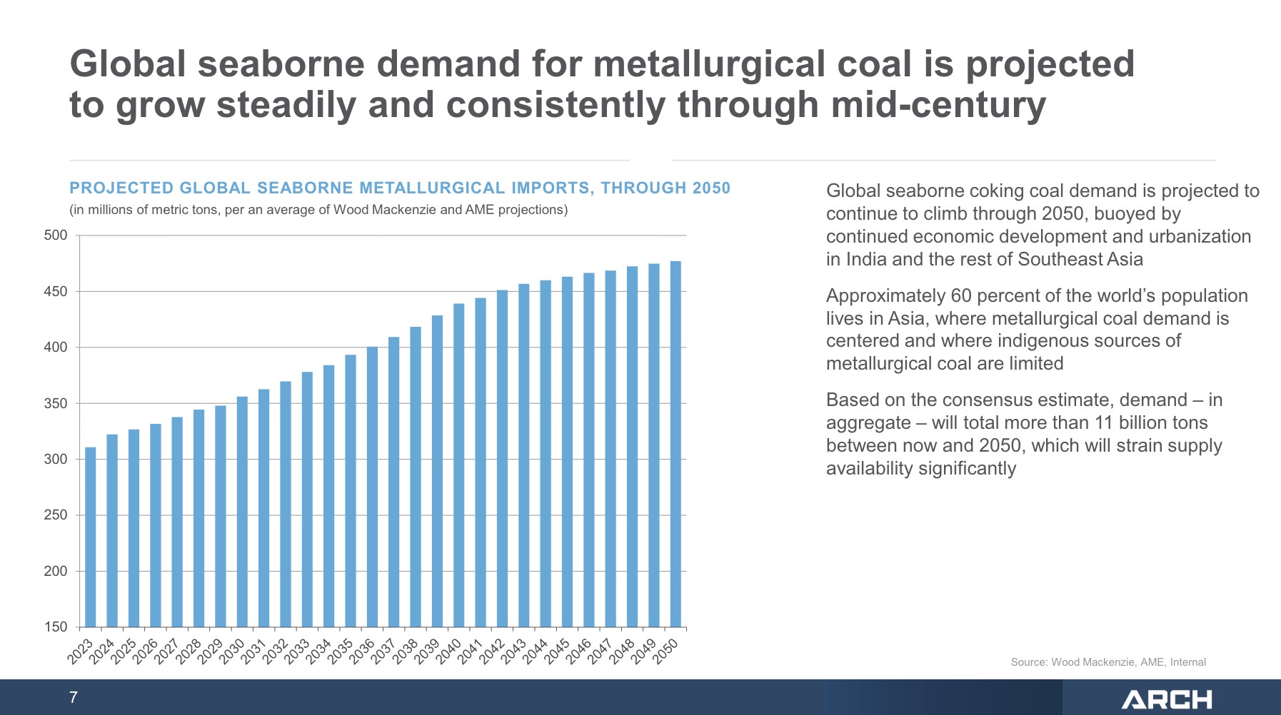 Arch Resources (ARCH), a major coking coal producer, used data from Wood Mackenzie to show that demand is not expected to decline until at least 2050!