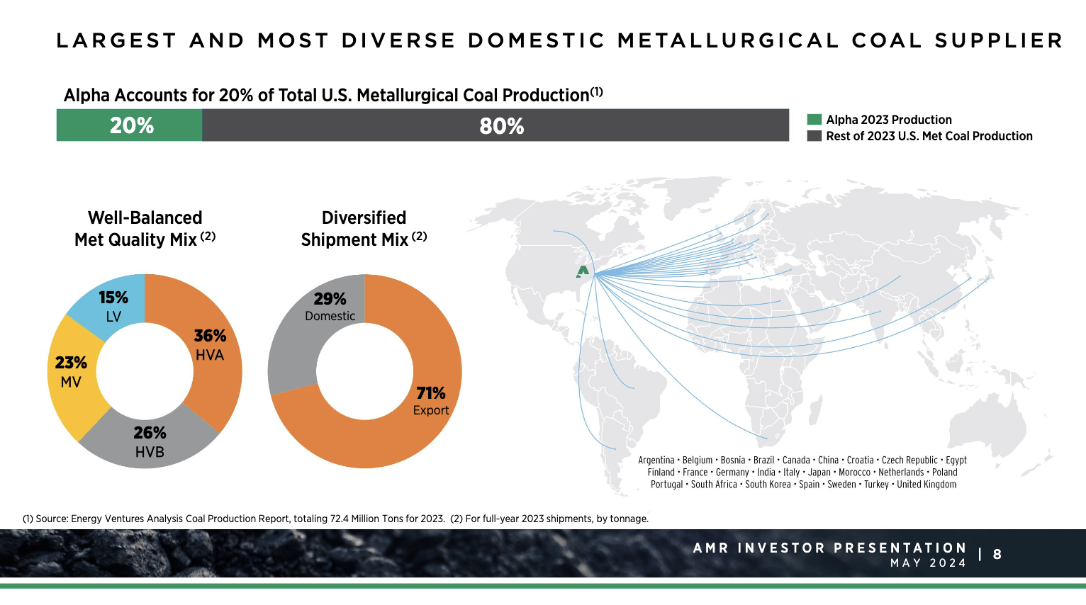 AMR is so large that it produces a fifth of the total U.S. metallurgical coal supply, with more than 70% of it going to export markets.