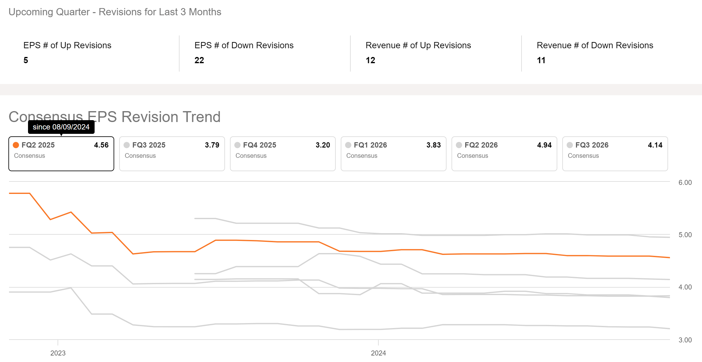 When you look at Home Depot’s earnings revisions for the coming quarter, the number of up revisions is only 5 for EPS, whereas the number of down revisions is 22! The situation is similar for the Fiscal Year End as well.