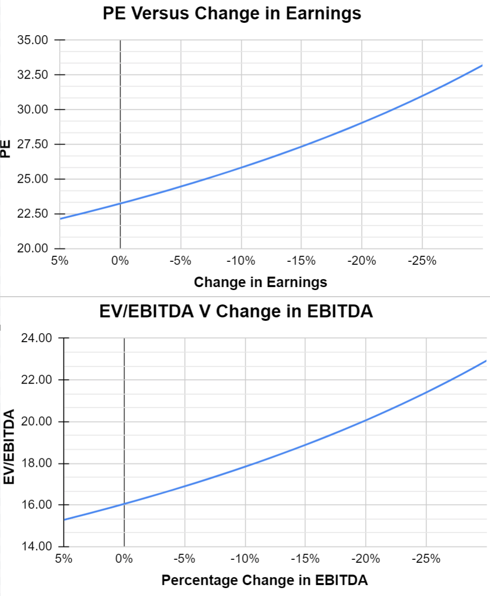 Since the company went public, it has continuously grown its bottom line except for 2008-2009 and now. 2009 earnings dropped more than 40% and EBITDA dropped by more than 30%. We saw a dip again last year akin to 2008 while this time could be different, and we may not see that huge of a drop in the coming fiscal year, what can be said for sure is it is priced for perfection.