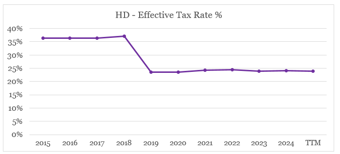 Thus, HD’s effective tax rate has fallen dramatically and yet another drop with a similar magnitude seems unlikely even after taking into account all of the promises made by Donald Trump’s new administration.