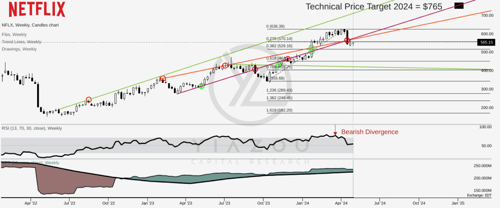Currently, with robust price momentum, our technical analysis suggests that NFLX could climb to $765 by the end of 2024, buoyed by a bullish shift in market sentiments. Even our conservative estimates see it no lower than $700.