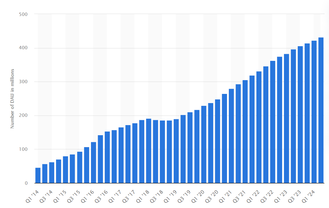 As far as DAU is concerned, Snap is still growing at a fairly steady rate. There was a slump about five years ago, but since 2020, DAU has been up consistently. This is, at first glance, a very positive sign.