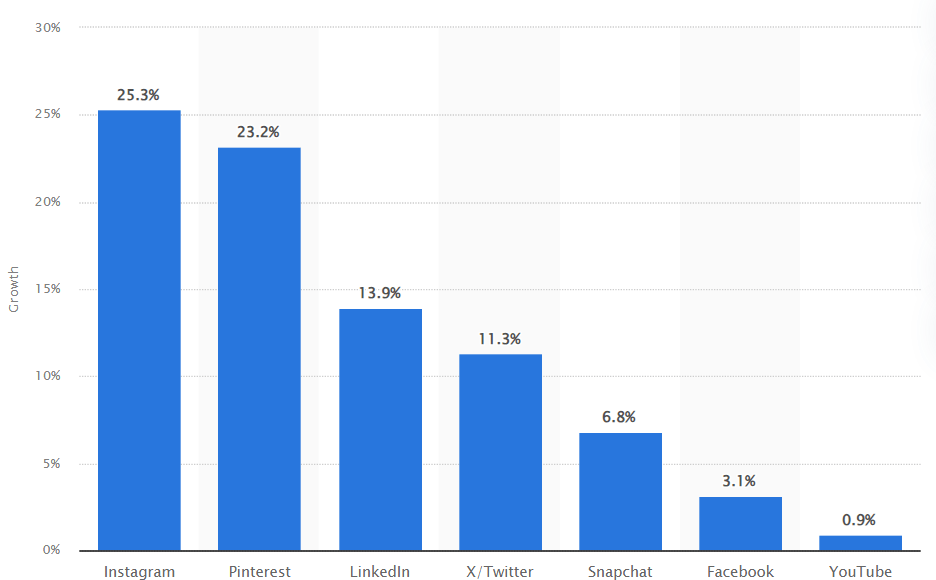 Snapchat’s growth among worldwide users has been positive, but is still far lower than other platforms. From 2023 to 2024, Snapchat grew its global userbase by 6.8%, but this pales in comparison to Instagram’s 25% and Pinterest’s 23%. Both of those companies also grew their US users, unlike Snapchat, which has stagnated in North American users for the last two years.
