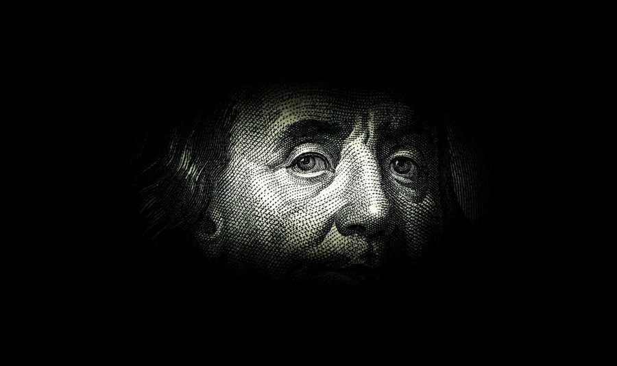 Ben Franklin"s face on the old US $100 dollar bill. Macro grunge style photo. Large resolution, large size, high quality.