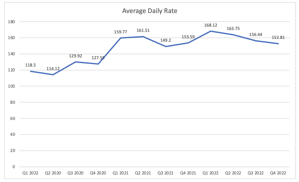 Airbnb average daily rate (Company data, author compiled)