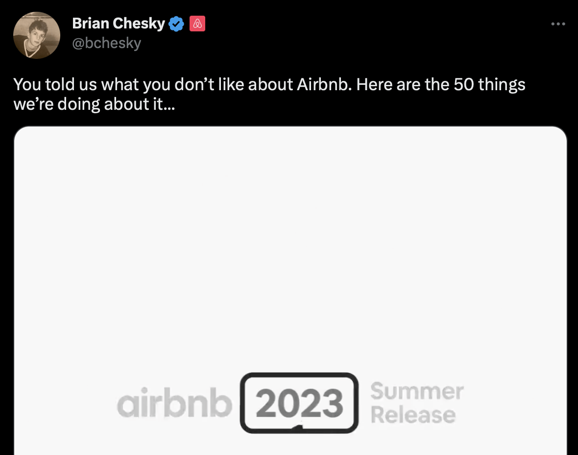 It’s rare to find a company as committed to creating a product users love as Airbnb. CEO Brian Chesky actively seeks feedback on Twitter and keeps users informed about frequently requested features.