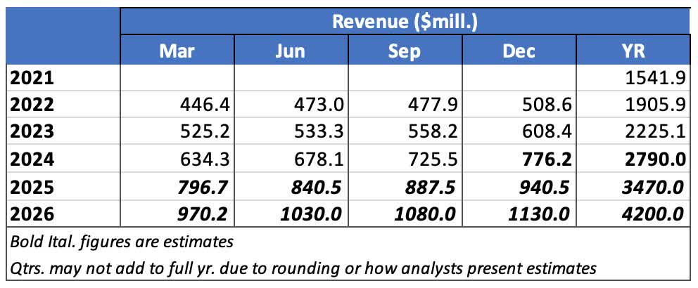 Analyst compilation based on data from Seeking Alpha Financials presentations