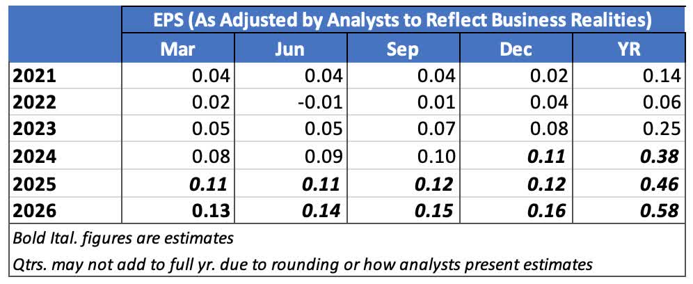 Here’s a summary of quarterly trends in Revenues and EPS.