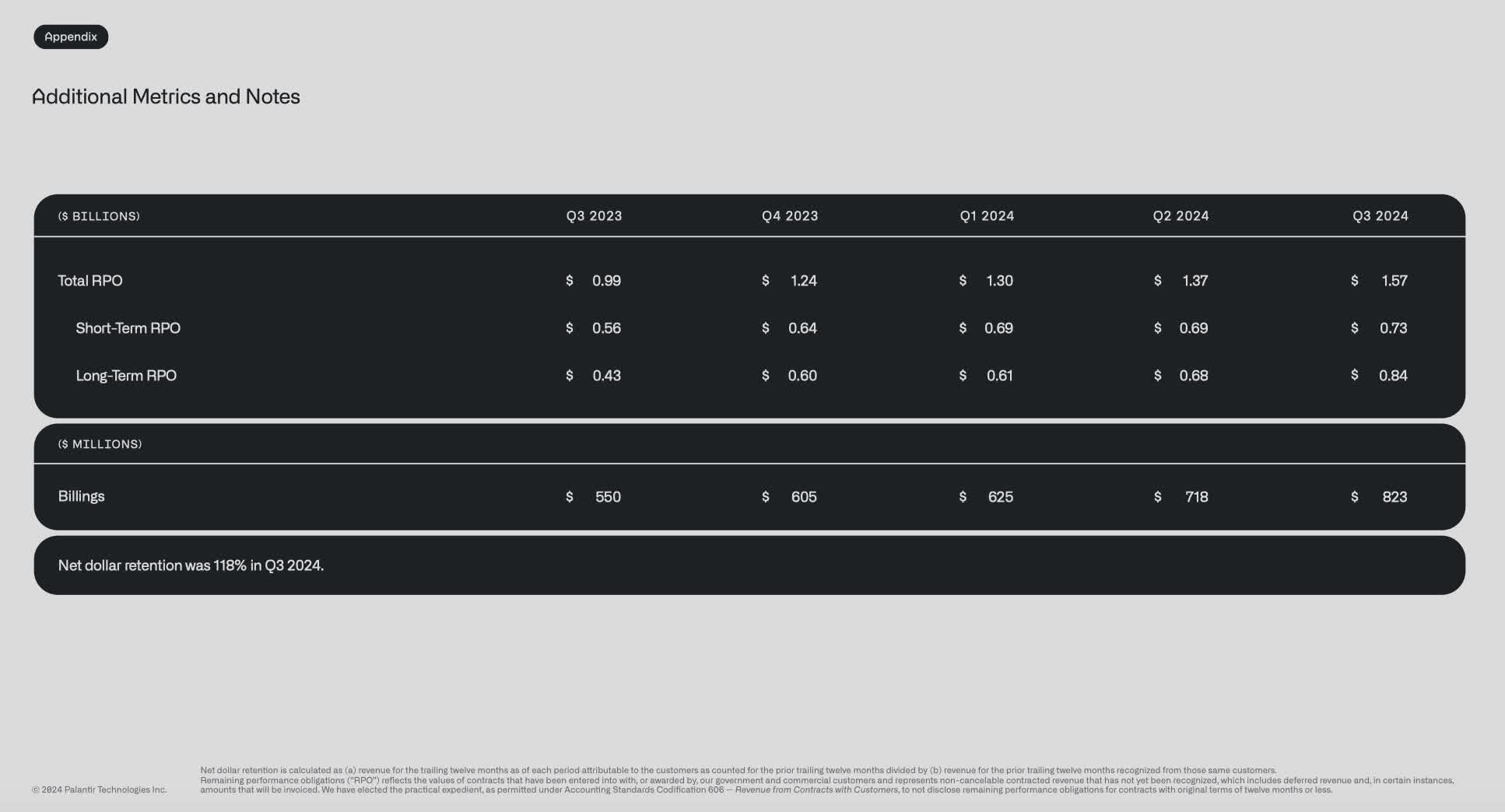 In the following image, RPO stands for Remaining Performance Obligation. It shows how much PLTR stands to book on existing contracts.