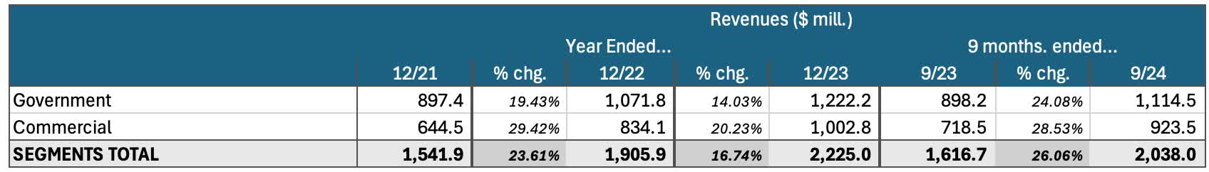 Here is the current Government-Commercial business breakdown: