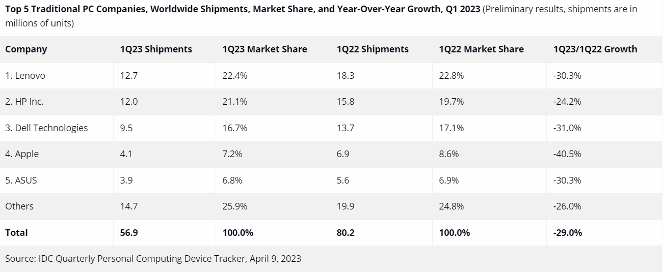 • A recent IDC report highlighted that conditions in the PC market have not improved in Q1 2023.