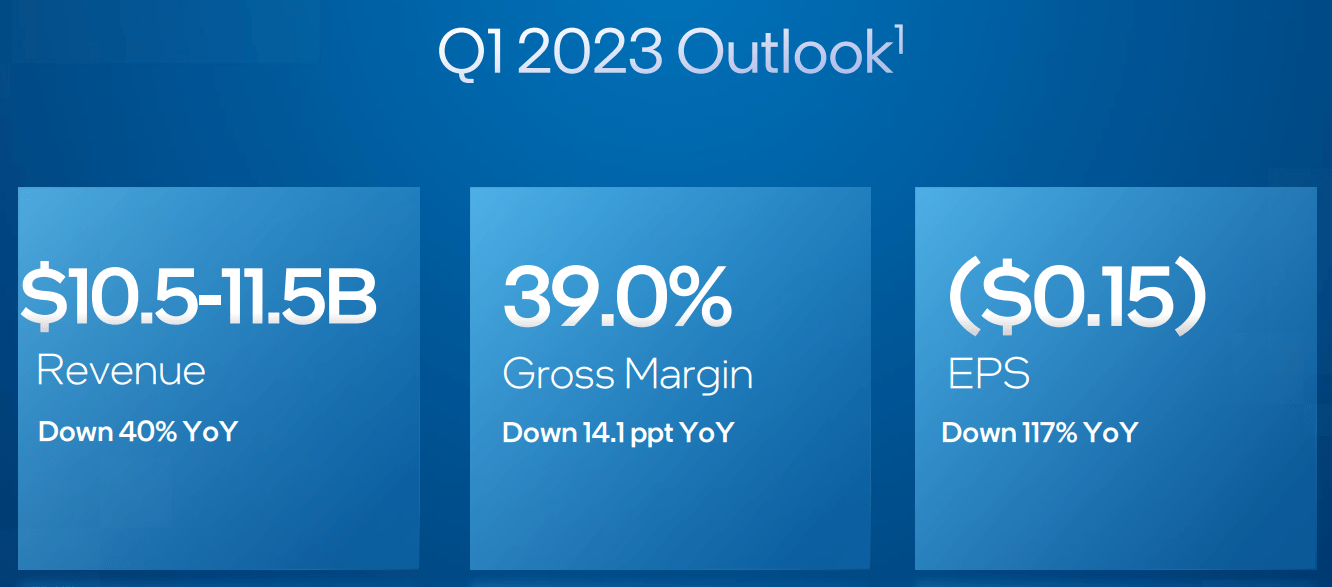• As a result, Intel Corporation is likely going to report weak Q1 2023 earnings later this month. The EPS revision trend is already very negative.