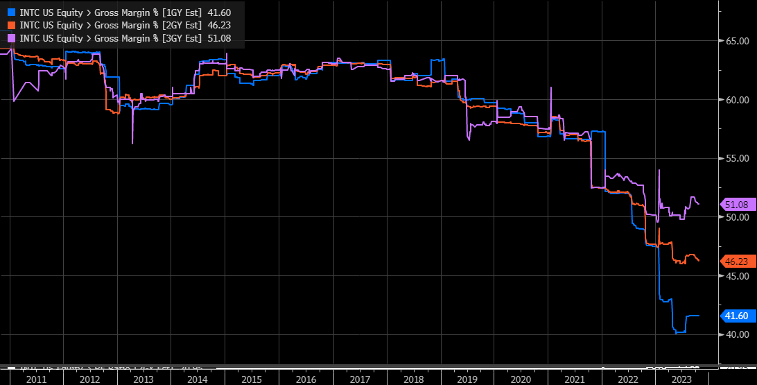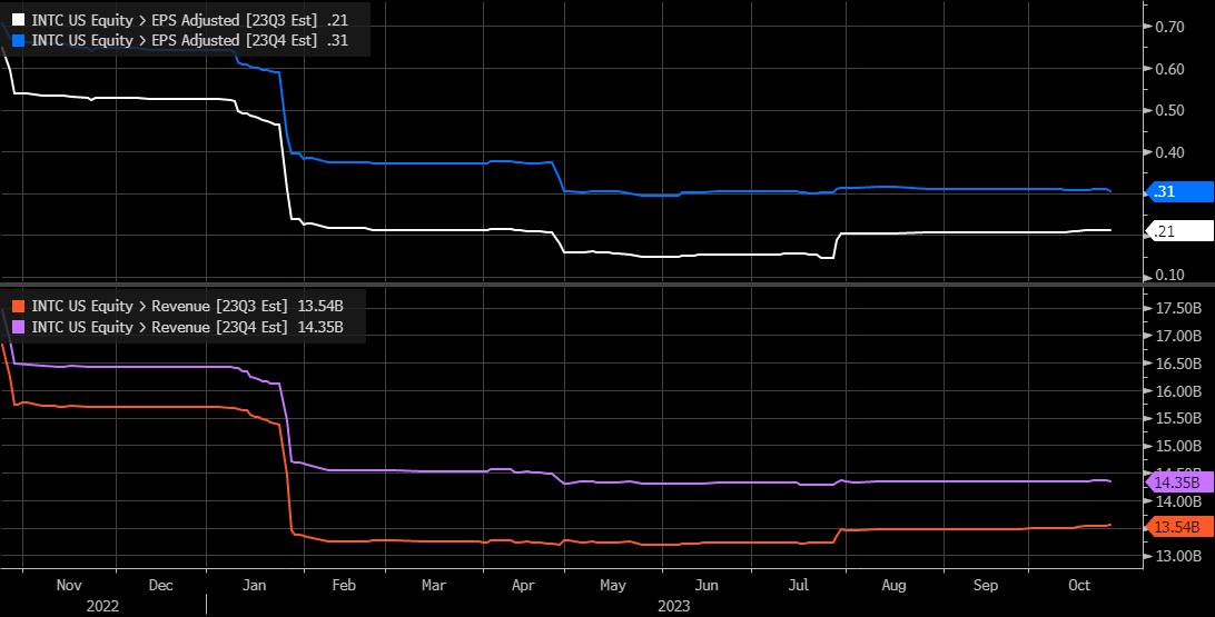 • Intel is expected to report a weak third quarter with a 64% drop in earnings and a 12% drop in revenue.