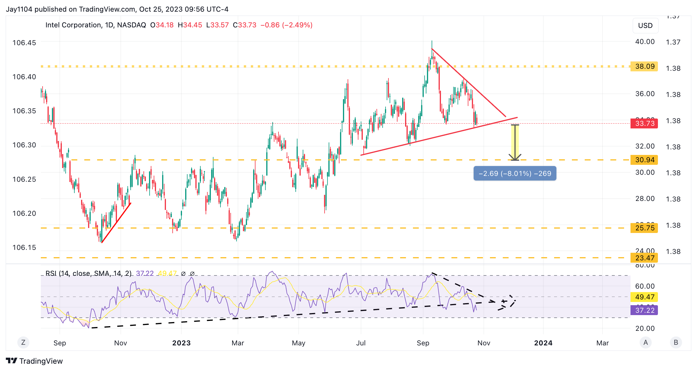 • Options traders are betting on further declines in Intel’s stock, with technical analysis suggesting a potential 8% drop.