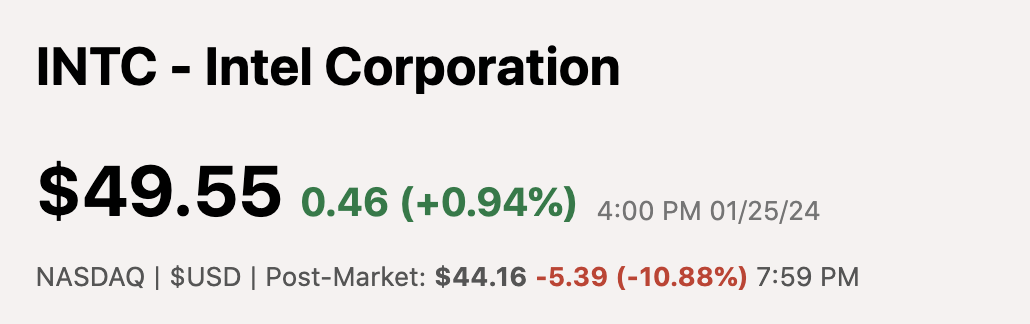 • Intel has rallied to nearly $50 despite lower revenue projections for Q1’24 and strong competition from Nvidia and TSMC.