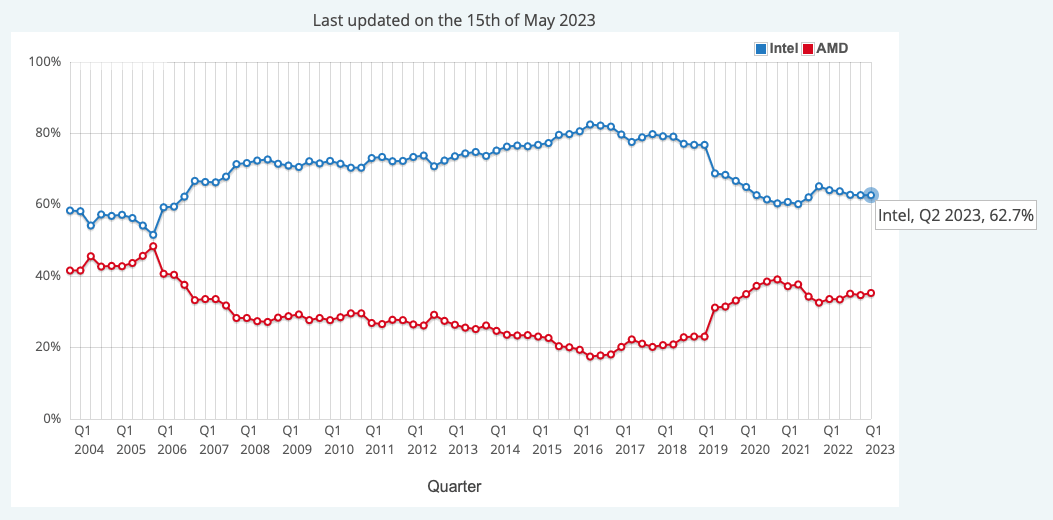 AMD vs Intel Market Share (All CPUs) (cpubenchmark.net)