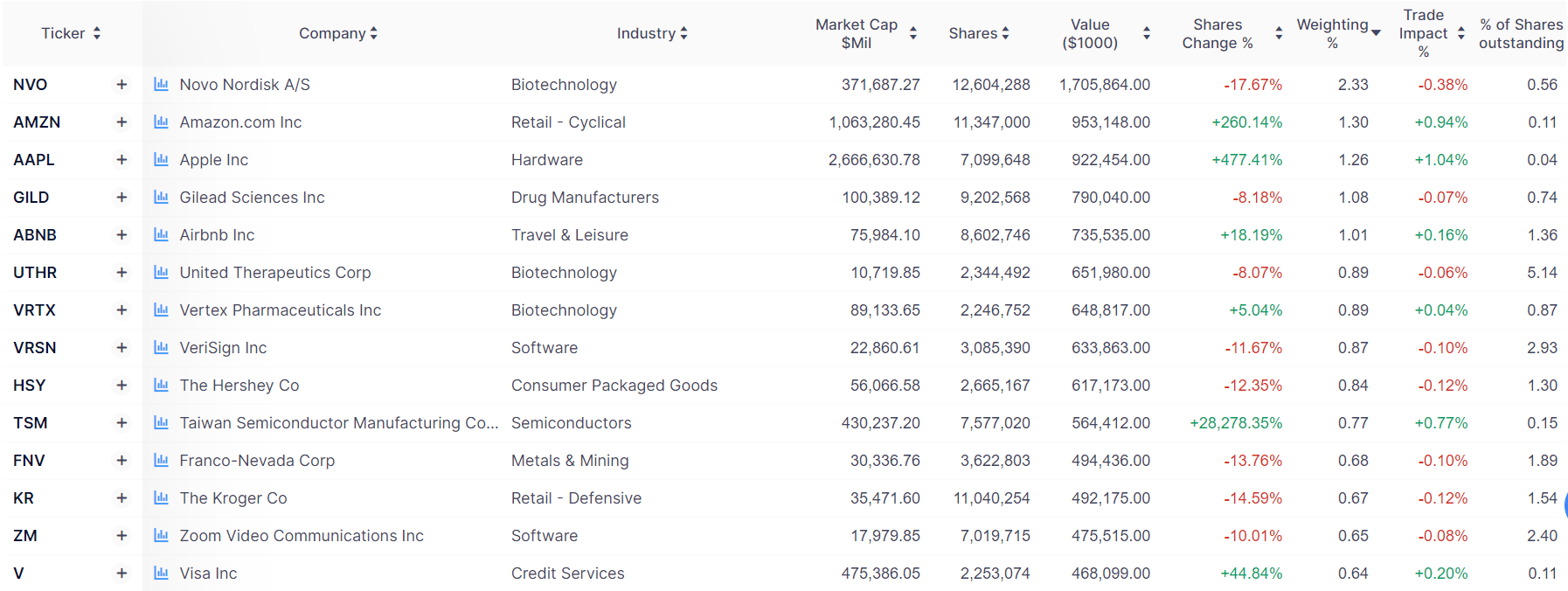 - Dave (DAVE) – A software company he sold in September 2022 for a 904% profit.